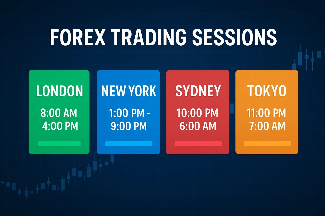 Learn the four major forex trading sessions , Forex Market Time Zone Converter – Sydney, Tokyo, London, and New York. Discover their timings, overlaps, and best hours to trade.