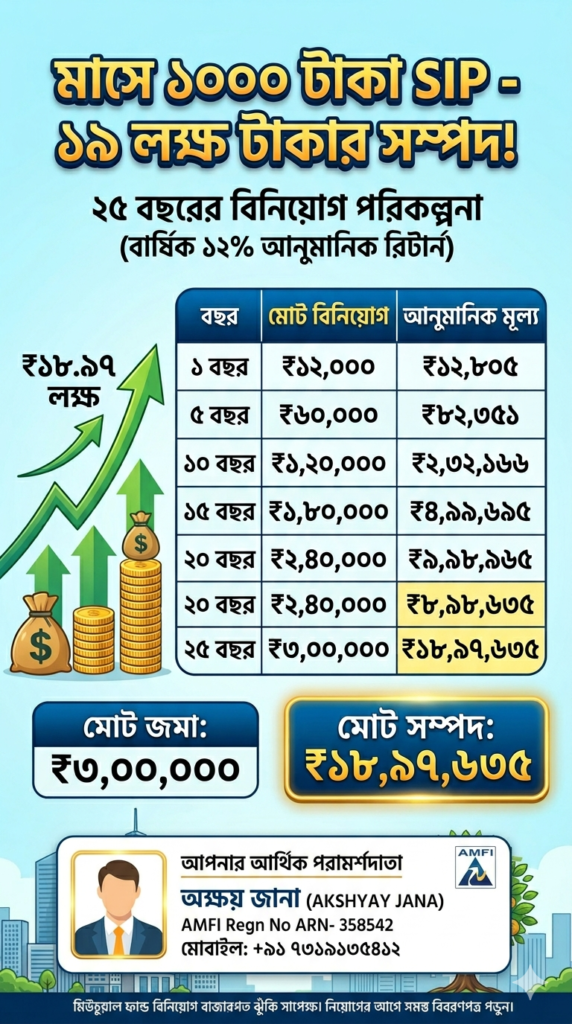 "ভাবুন, আপনি একটি চারাগাছ লাগালেন। প্রতিদিন অল্প অল্প জল দিলে সেটা যেমন কয়েক বছর পর একটা বিশাল বড় ছায়াদার গাছে পরিণত হয়, SIP ঠিক সেরকমই। আপনার আজকের ছোট সঞ্চয় আপনার ভবিষ্যতের বড় সুরক্ষা।"